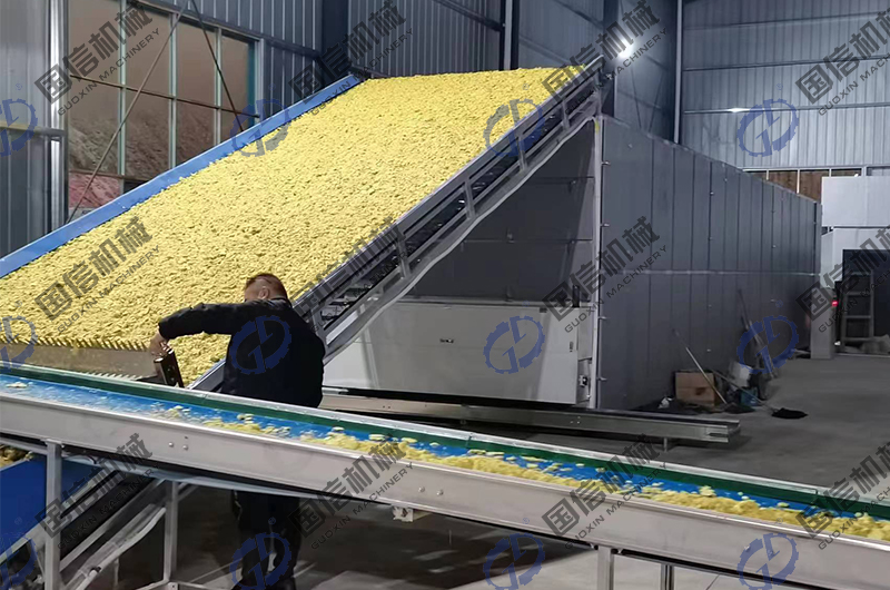 該設(shè)備是根據(jù)客戶要求采用熱交換爐(煤或生物質(zhì)顆粒等)做熱源,干燥周期短,產(chǎn)量大,是批量干燥生姜片的理想設(shè)備。為方便大家選購,我們國信機(jī)械廠家就帶大家來了解一下姜片烘干加工生產(chǎn)線設(shè)備的選型步驟。