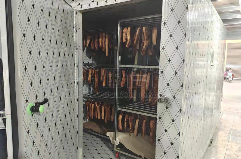 臘味烘干機特點 1、可模擬冬季氣候條件,設備自動實現(xiàn)冷(最低10℃)、熱風(最高75℃)烘干; 2、自動化程度高,采用觸摸屏控制,可精確控制烘房溫度、及濕度; 3、生產(chǎn)環(huán)境衛(wèi)生,設備運行過程中無廢氣、廢水、廢渣排放; 4、節(jié)省勞動力成本,無需安排專職人員看守設備。