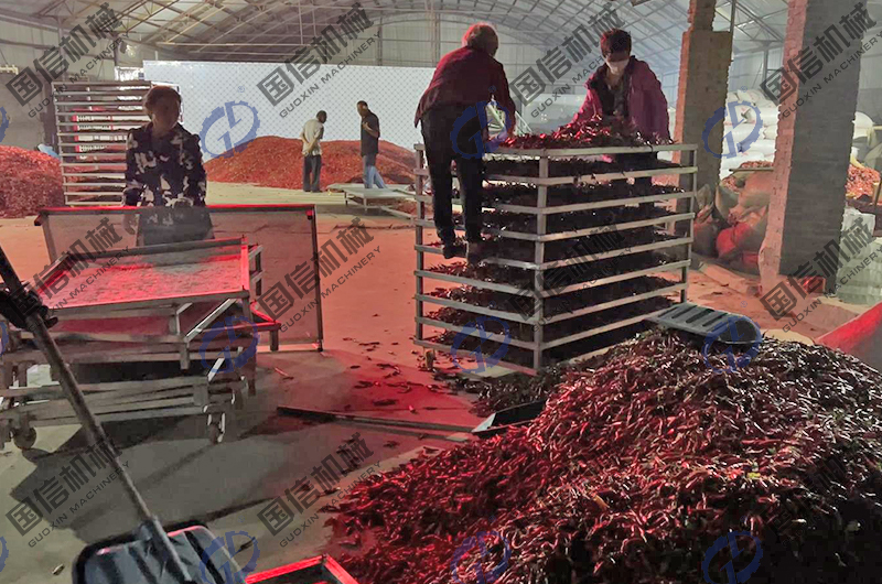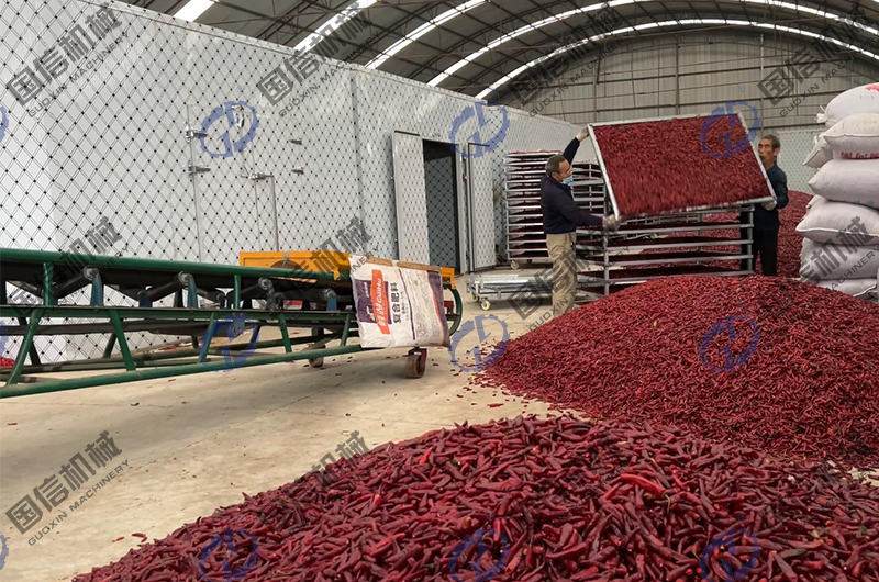 近日,許昌長葛的客戶在我公司購買的空氣能辣椒烘干房已經(jīng)投入使用,并開始盈利。目前,設備運行順暢并得到客戶的一致好評,下面是工作人員拍攝的辣椒烘干加工現(xiàn)場圖片。